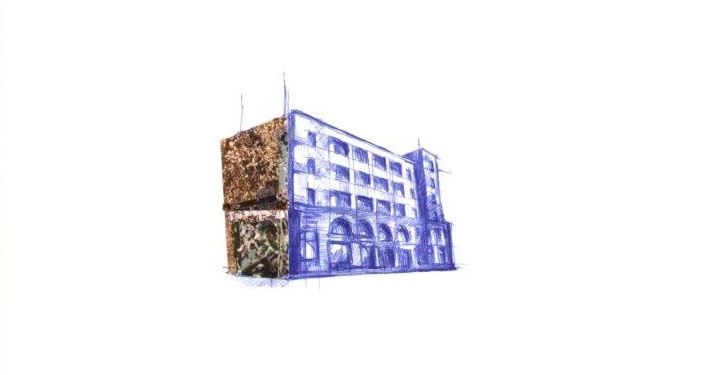 Materials: terracotta tiles, drawings, decals